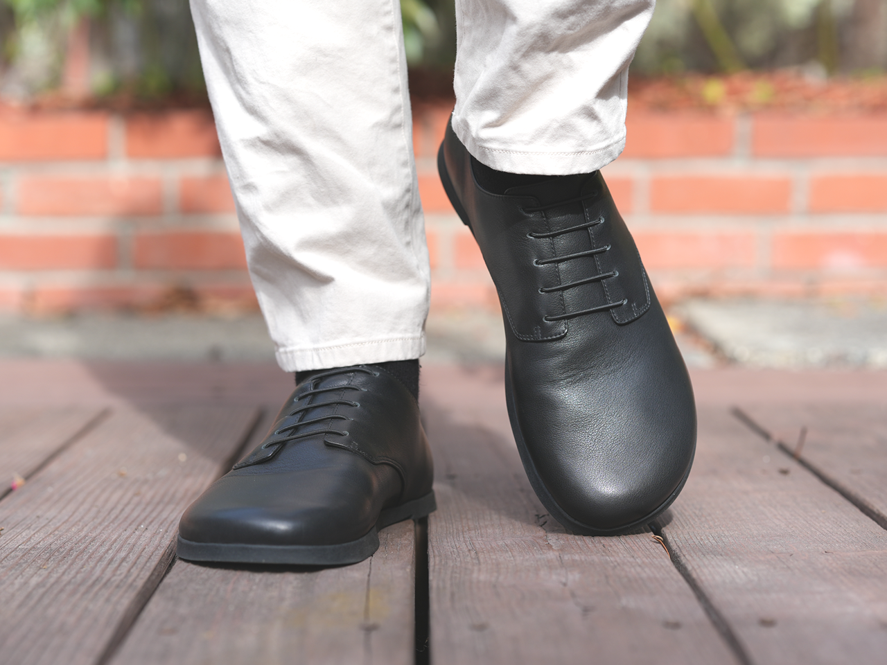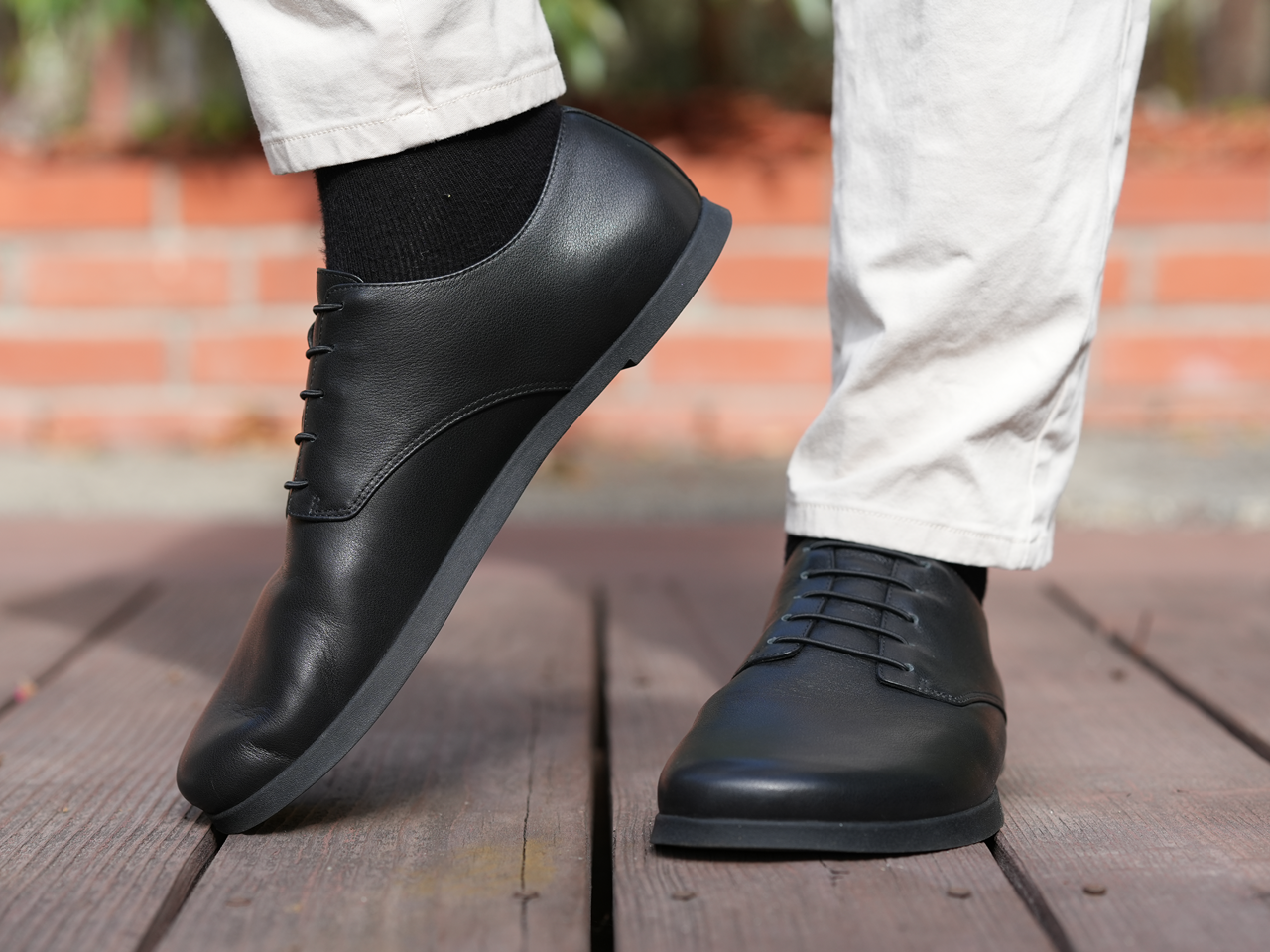 We redesigned the dress shoe from scratch to be wide toe & zero drop allowing your toes to splay and your gait to strike naturally.